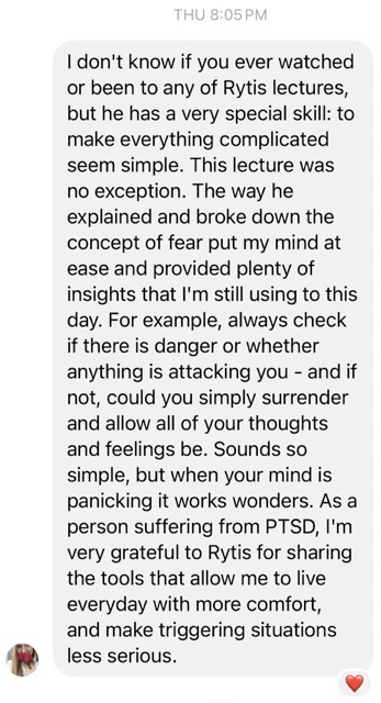 “Fear keeps us focused on the past or worried about the future. If we can acknowledge our fear, we can realize that right now we are okay.”